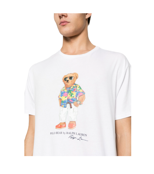 Urso Polo, “Polo Bear by Ralph Lauren” e inscrição “Ralph Lauren” estampados no centro da frente.
