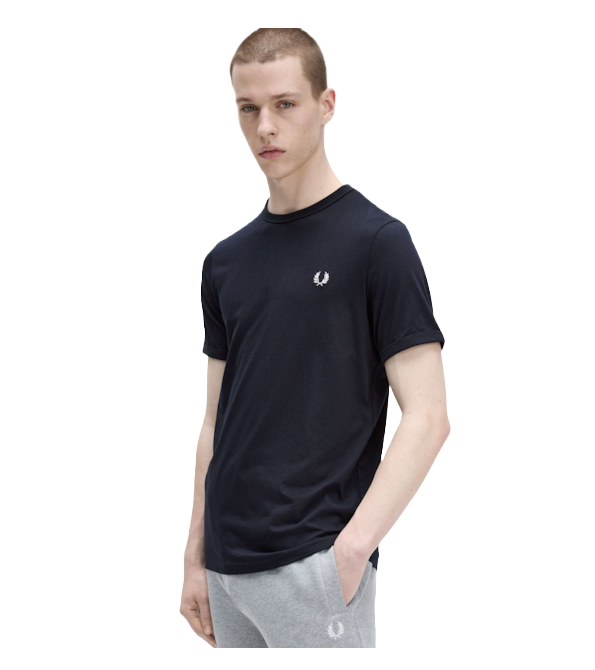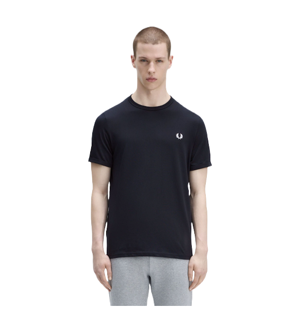 Uma T-shirt de gola redonda em jersey de algodão, sem detalhes extras, com a coroa de louros no peito.